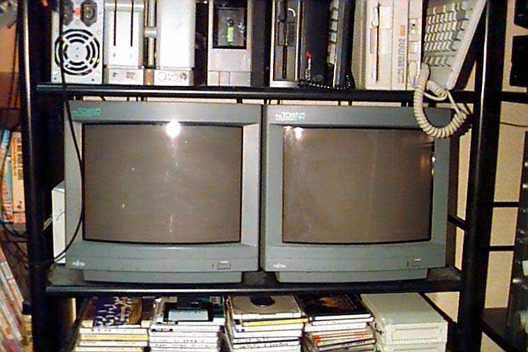 あと画面が白くなり表示がおかしくなったり、起動時にVRAM TEXT ERRORになると、液晶の載ってる辺りを押さえると復活するので、それは液晶下の基盤と本体基盤との接触不良のようだ。こちらは組立後直後に起こるがあとはあまり起こらないようだ。画面が変になってもWIN95はそのまま動いていたので、あまり深刻ではないみたいだが。