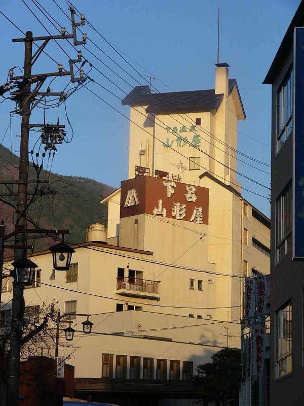 あそこが今回の宿、山形屋です。料理も美味かったー