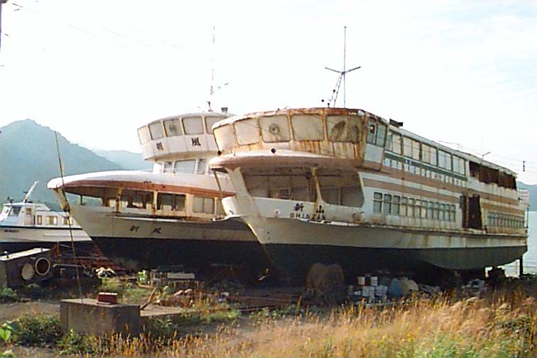 これは有珠山近辺です。噴火のため廃船になったのでしょうか、うち捨てられていました。