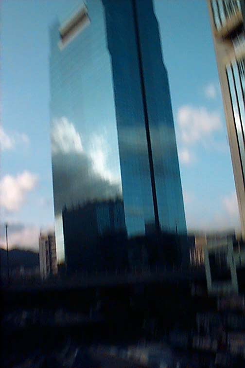 上の写真の右側のビル。ブレているのだが、青いのはわかるので載せる。
