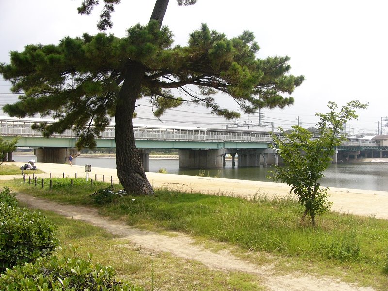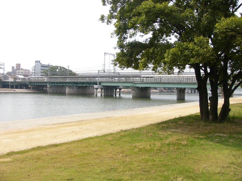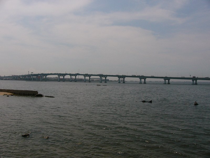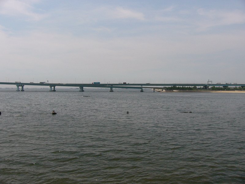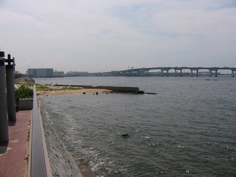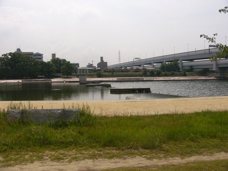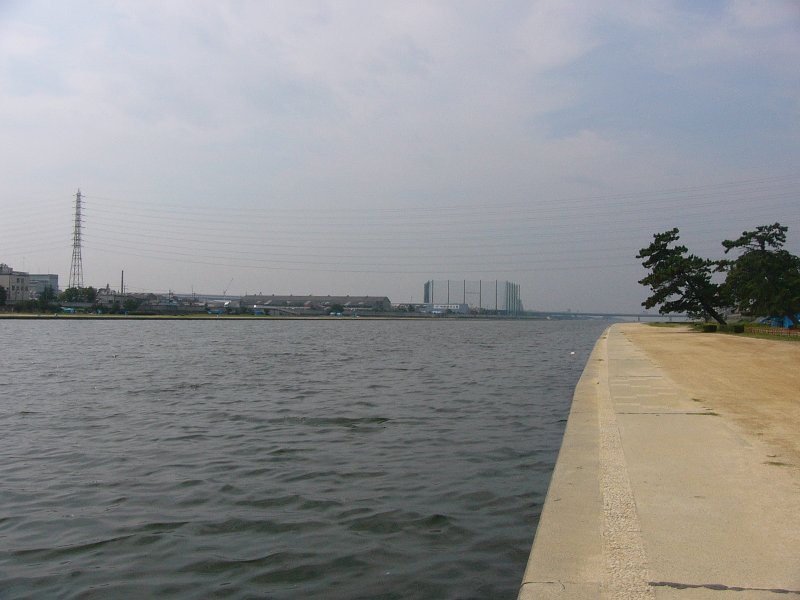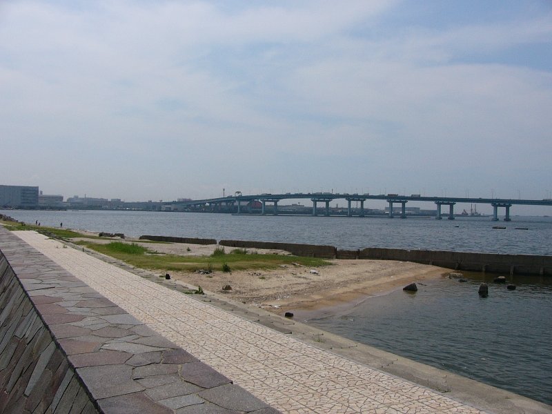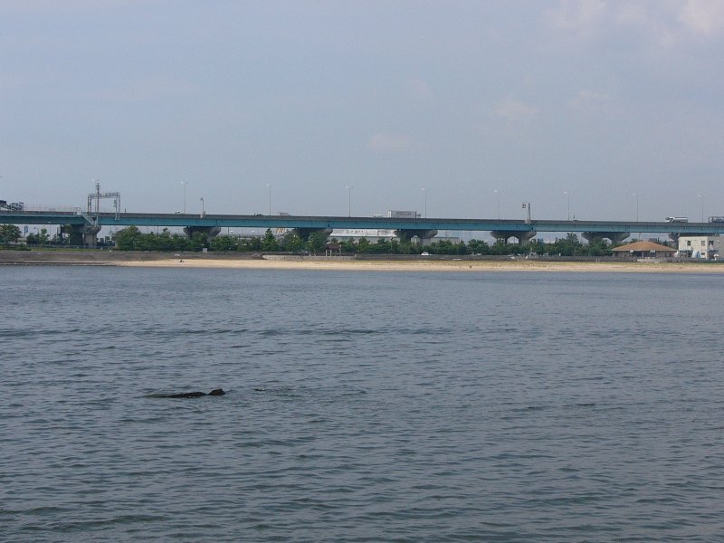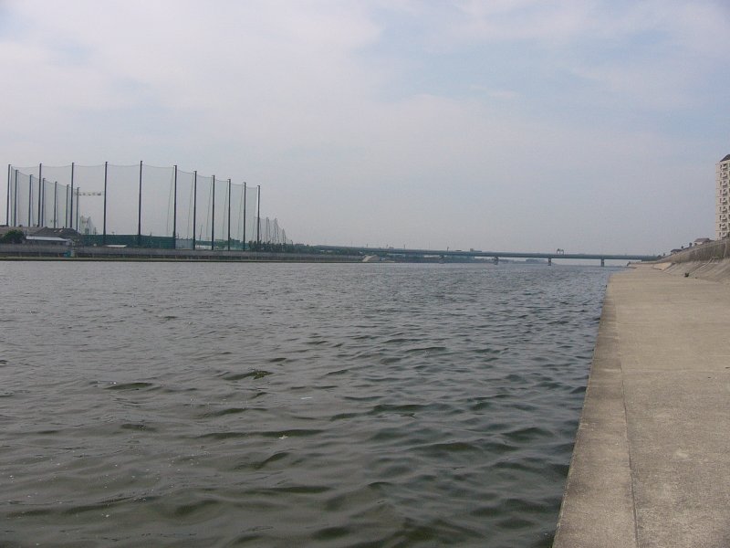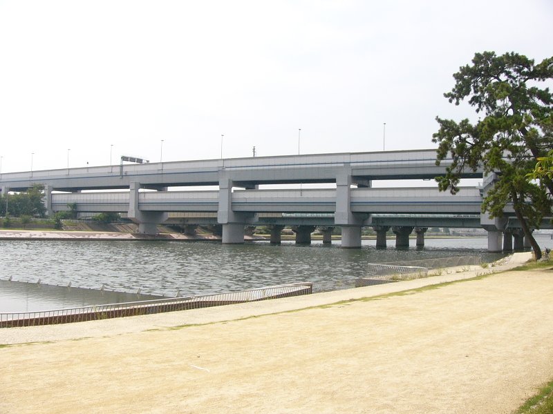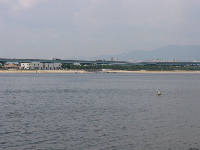 武庫川河川敷終了〜 向こうに見えるのは、湾岸高速です。
