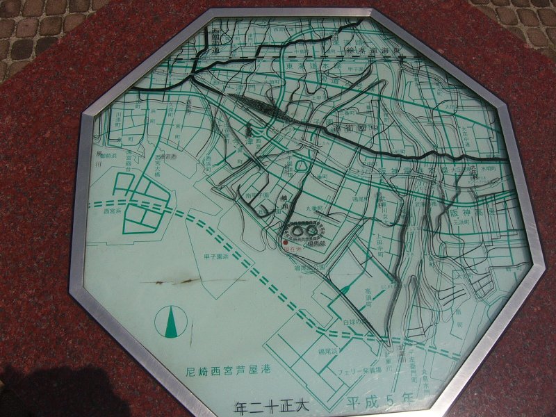 阪神武庫川駅と、国道43号線、阪神高速の間