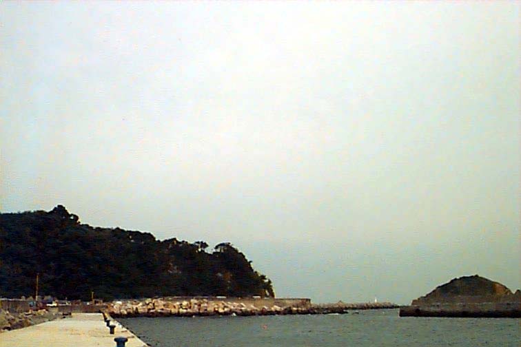 島の港です。朝に近かったんだけど逆光だったので、全体に暗くなった。