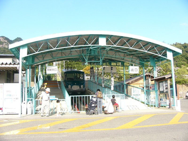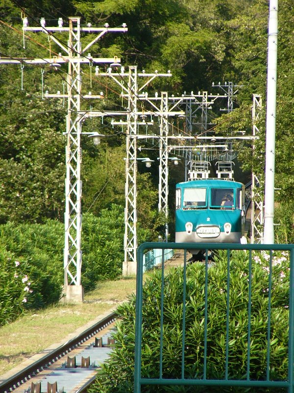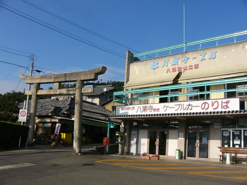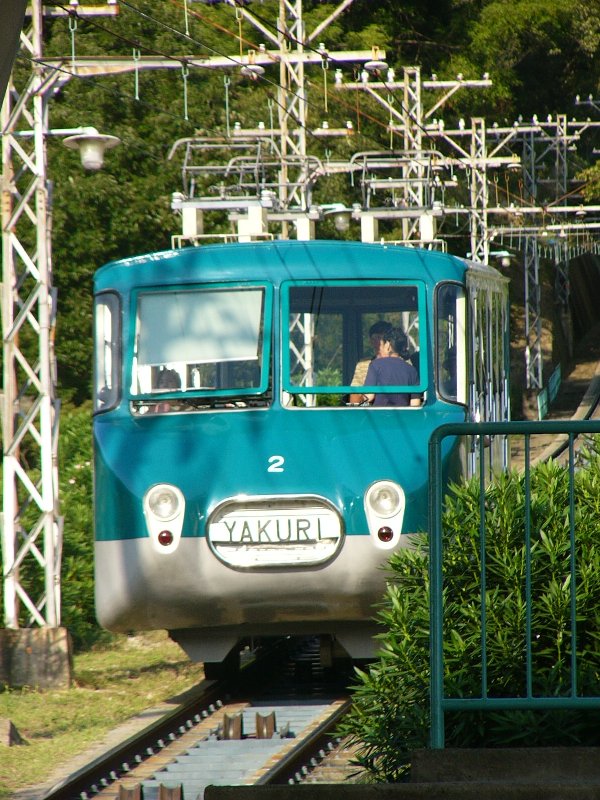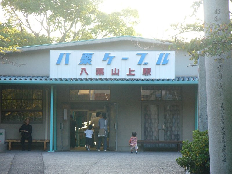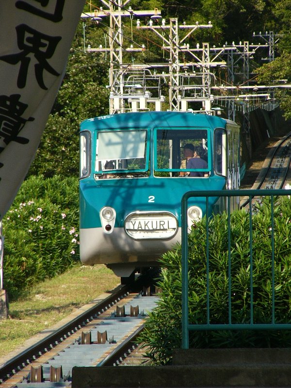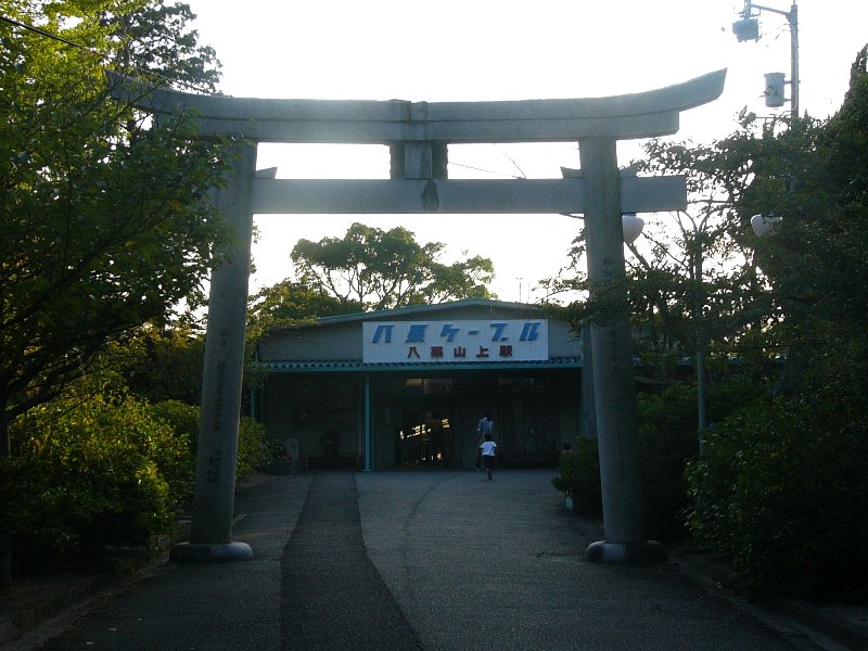 ケーブルで山頂に、駅から歩いていったところにある門です