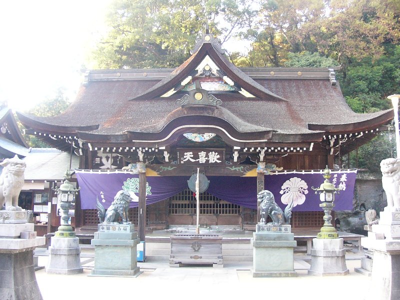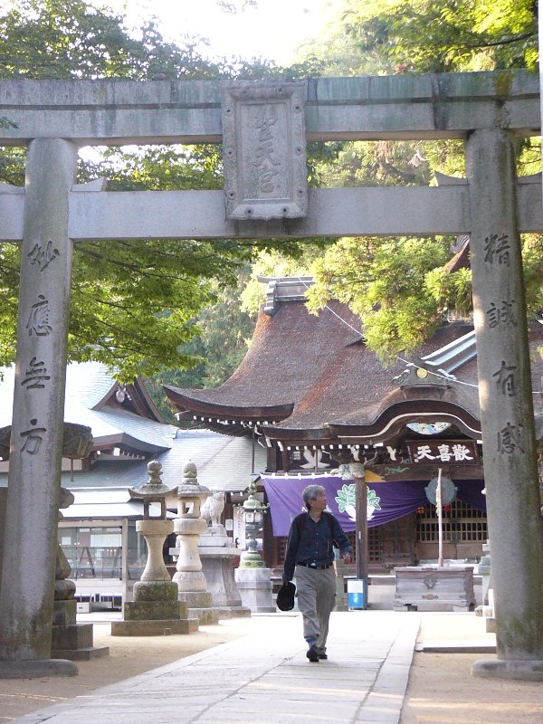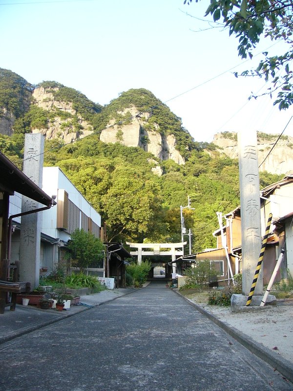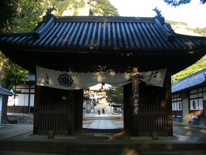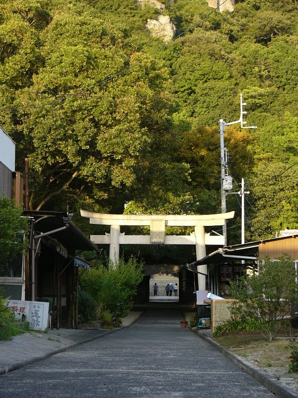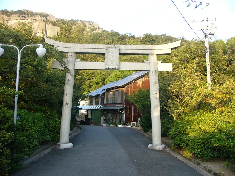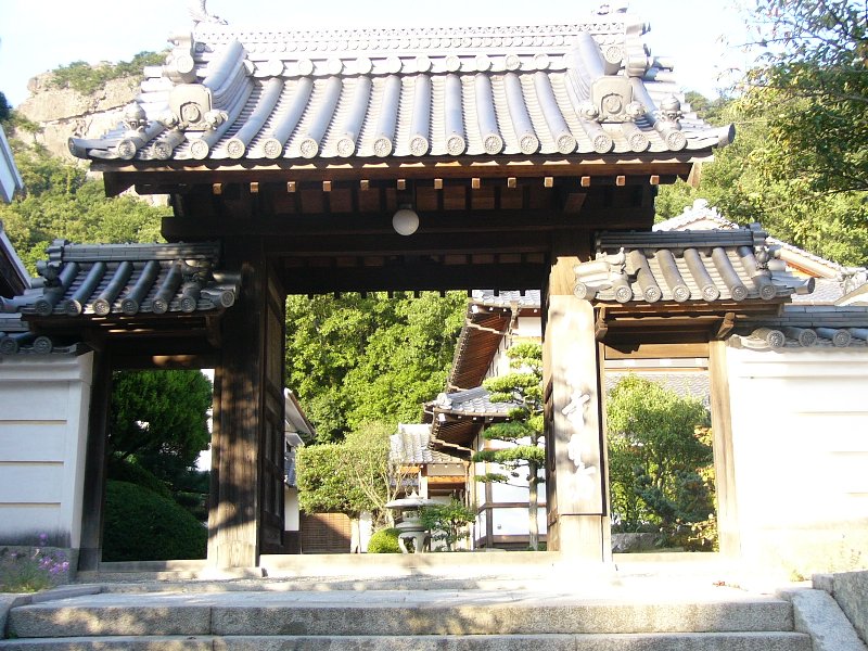 ケーブルで山頂に、駅から歩いていったところにある門です