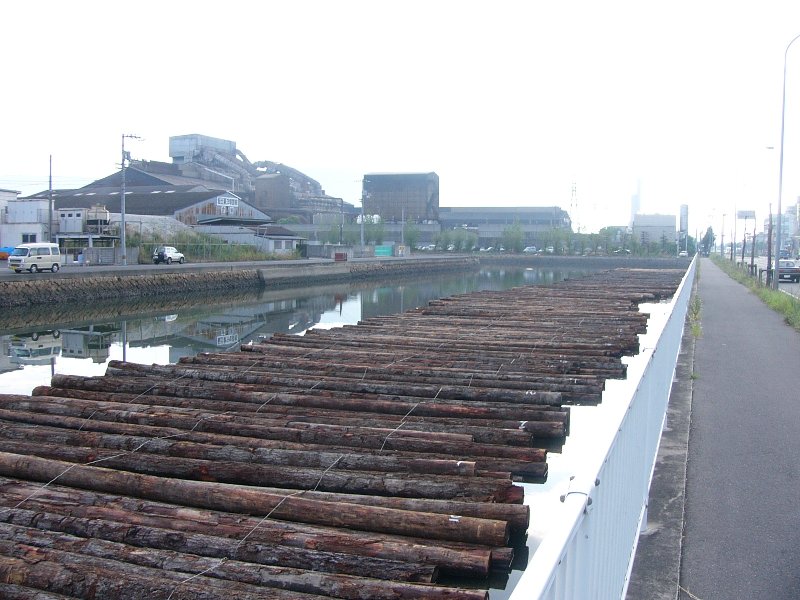 二日目の朝、ホテルから歩いてみました。材木置き場