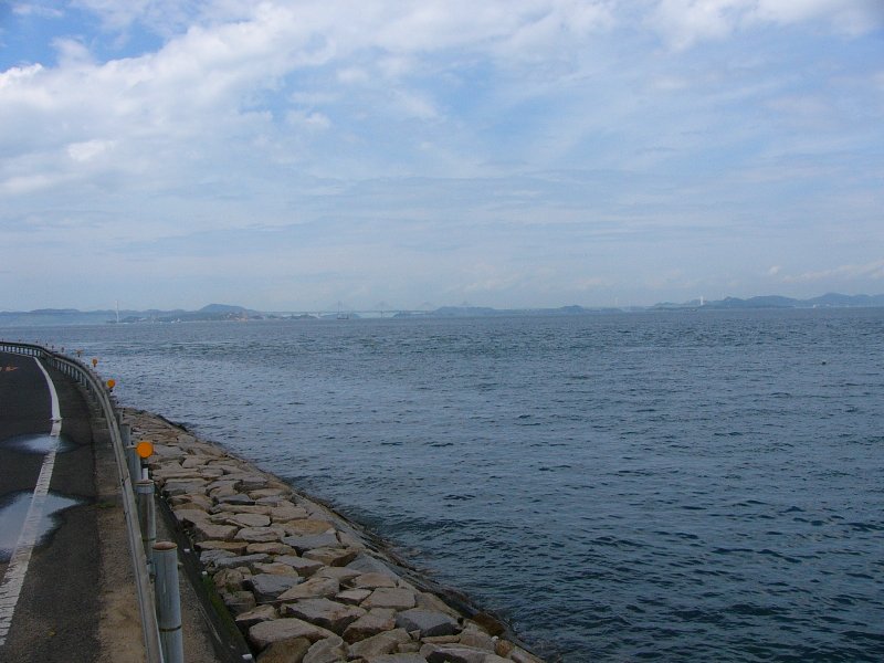 坂出方面に向かっています。瀬戸大橋が見えます。